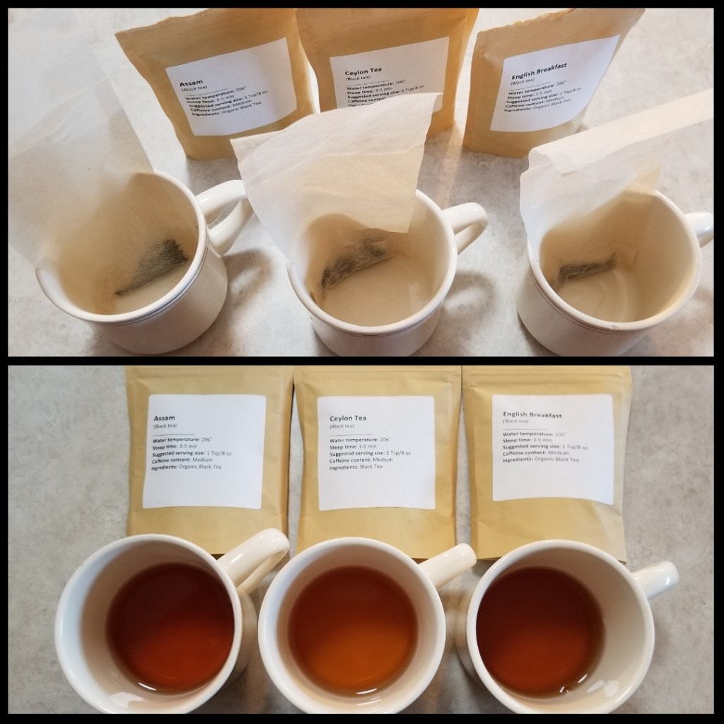 I decided that I’d not only try a few different black teas to see what I liked best, but that I’d also try a local tea shop to compare their teas to the ones I order from Tea Clan. Well, long story short, no one was manning the tea shoppe when I arrived (it’s part of a brewery/market setup and every other place was open) so I had couldn’t try their teas. Instead, I ordered three different black teas from Tea Clan—Assam, Ceylon Tea, and English Breakfast.